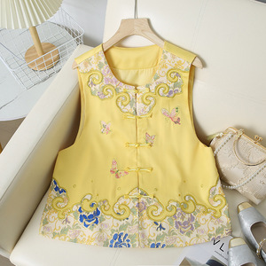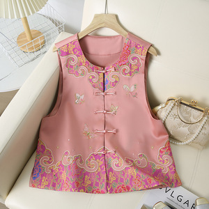 批发一件代发2025秋季新中式国风重工刺绣盘扣马甲高级感马夹上衣