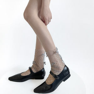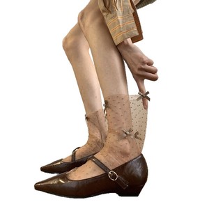 氛围感摩登欧若风出游穿搭中筒袜多蝴蝶结波点网纱仙气春夏可露丽
