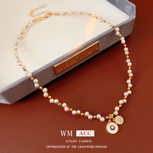 锆石珍珠缠绕八星芒吊坠项链复古轻奢高级感锁骨链时尚气质饰品女