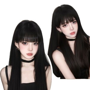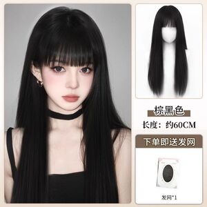 黑长直假发全头套女仿真发空气刘海蓬松自然时尚日常黑长直齐刘海