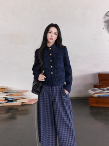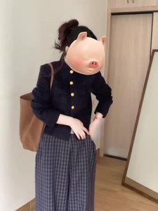 意法2025年秋季新款藏青色小香风外套女高腰半身裙套装女装外套女
