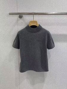 南油女装M家25早秋新款胸前微标字母百搭复古羊绒针织衫短袖上衣