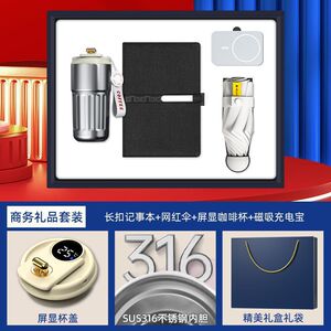 【黑色四件套】咖啡杯+长扣本+网红伞+3C磁吸充电宝