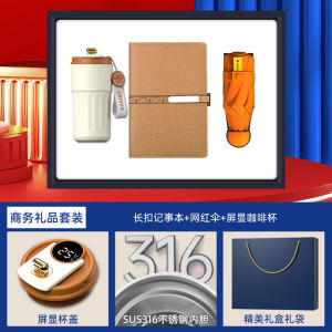 【棕色五件套】咖啡杯+长扣本+签字笔+八骨伞+3C支架充电宝