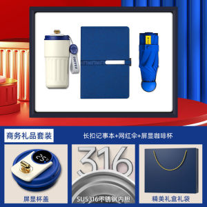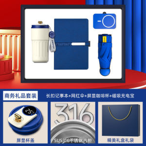【蓝色四件套】咖啡杯+长扣本+网红伞+3C磁吸充电宝