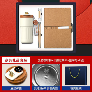 【棕色四件套】咖啡杯+长扣本+签字笔+U盘