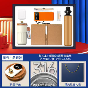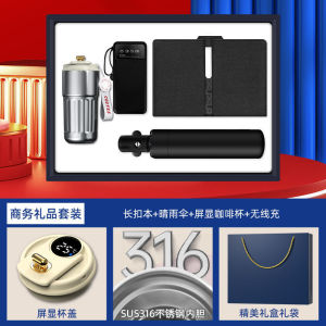 【黑色七件套】咖啡杯+长扣本+签字笔+U盘+网红伞+蓝牙音箱+充电宝