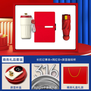 【红色四件套】咖啡杯+长扣本+网红伞+3C磁吸充电宝