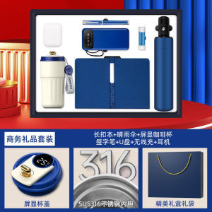【蓝色七件套】咖啡杯+长扣本+签字笔+U盘+八骨伞+蓝牙耳机+充电宝