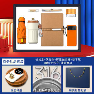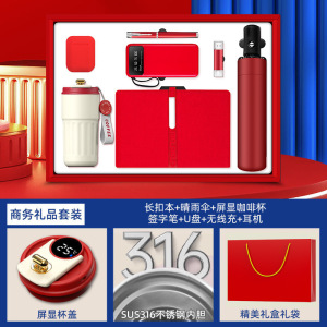 【红色七件套】咖啡杯+长扣本+签字笔+U盘+八骨伞+蓝牙耳机+充电宝