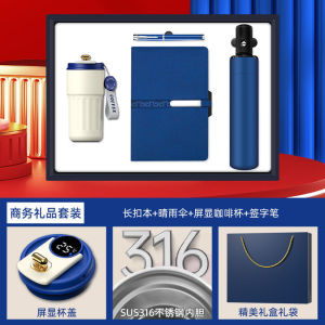 【蓝色四件套】咖啡杯+长扣本+签字笔+八骨伞