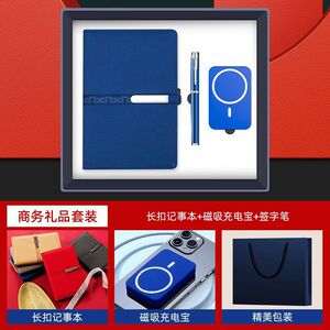 【蓝色三件套】长扣本+签字笔+3C磁吸充电宝