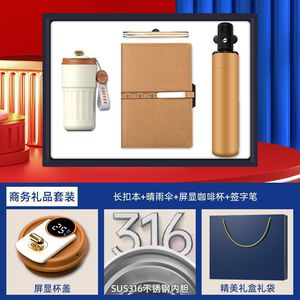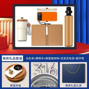 【黑色五件套】咖啡杯+长扣本+签字笔+八骨伞+3C支架充电宝