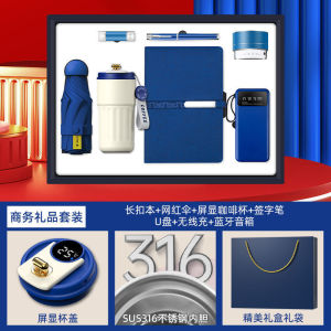 【蓝色七件套】咖啡杯+长扣本+签字笔+U盘+网红伞+蓝牙音箱+充电宝