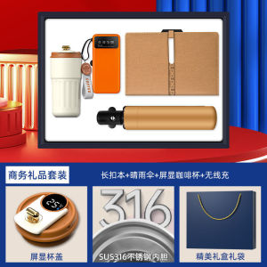 【棕色七件套】咖啡杯+长扣本+签字笔+U盘+网红伞+蓝牙音箱+充电宝