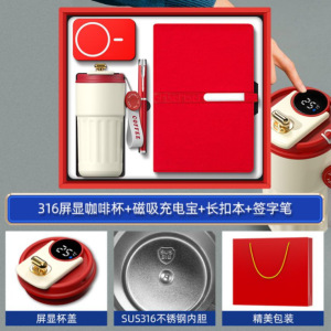 【红色四件套】咖啡杯+长扣本+签字笔+3C磁吸充电宝