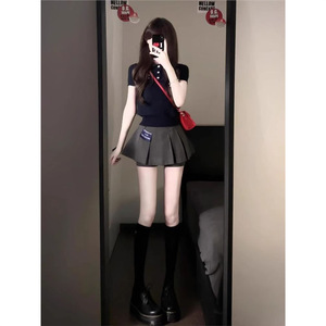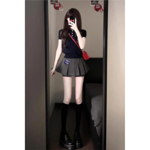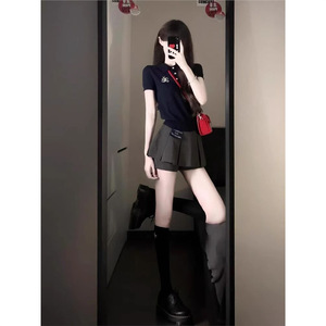 夏季新款韩系减龄穿搭气质短袖T恤上衣+高腰设计感半身裙两件套女