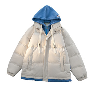 厂家批发冬季新款男女加厚连帽棉衣潮流休闲百搭假两件情侣款外套
