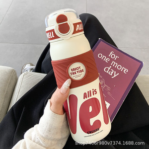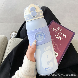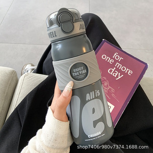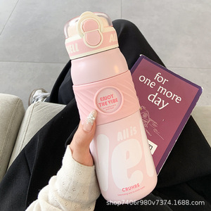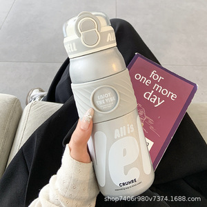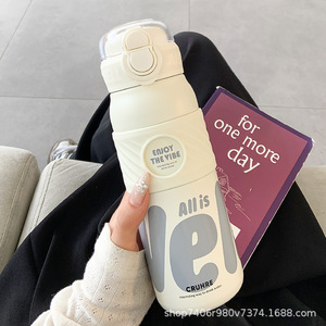 简约保温杯女生吸管双饮水杯女新款2025高颜值大容量便携学生杯子