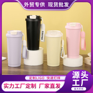 新款304不锈钢保温杯高颜值铃兰咖啡杯便携提绳双饮水杯批发定制