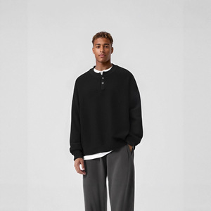 FBUF纯色亨利领毛衣男可机洗休闲宽松针织毛衫男中性风内搭打底衫