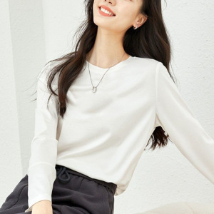 简约百搭纯色长袖t恤女秋装秋衣薄款卫衣内搭打底衫百搭上衣服