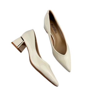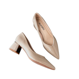 羊皮版~2025新款韩版高跟鞋粗跟浅口单鞋尖头时尚魅力女士纯色百