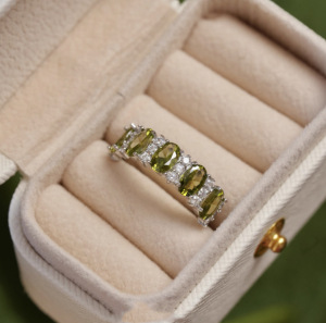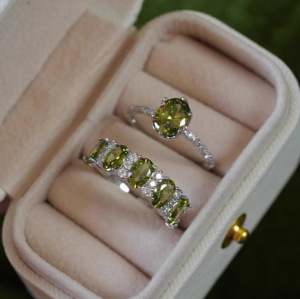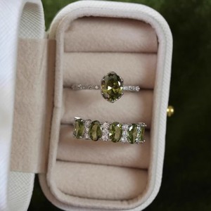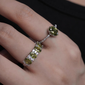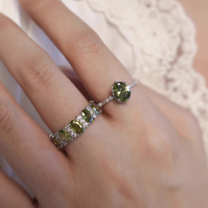 法式复古橄榄绿锆石戒指女高级感优雅闪耀精致轻奢显白开口指环潮