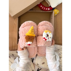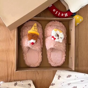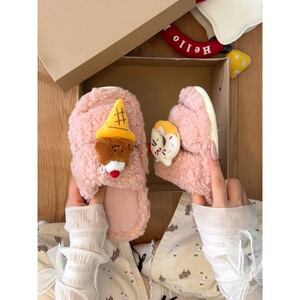 可爱卡通一字少女心毛毛鞋女款2025秋冬季新款时尚外穿棉鞋棉拖鞋