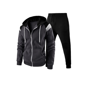 跨境外贸新款欧美男士拼色撞色时尚男款拉链休闲运动连帽卫衣套装