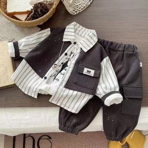 2025新款男童秋装套装儿童小童韩版拼色春秋衣服宝宝假马甲三件套