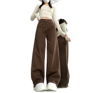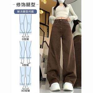春秋新款高腰显瘦小个子咖色百搭阔腿牛仔裤女宽松垂感直筒拖地裤