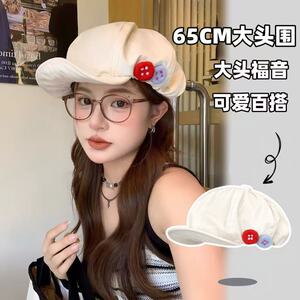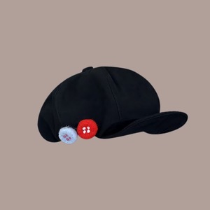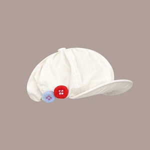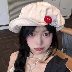 复古棉麻八角帽女夏季彩色可爱毛毡纽扣画家帽子不对称云朵贝雷帽