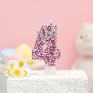 跨境电商专供创意粉色皇冠系数字生日蜡烛亚马逊速卖通网红庆生派
