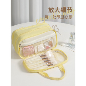 2025新款化妆包女大容量双手提三层分区化妆品收纳包轻奢防水包