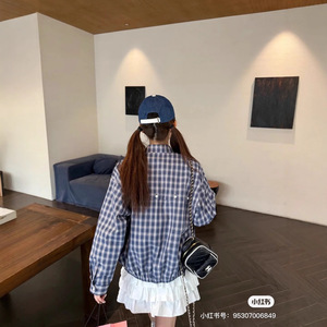 25秋新款款学院风减龄百搭贴布绣字母蓝色格子外套