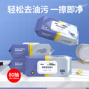 80抽厨房湿巾去油污家用油烟机厨房强力清洁湿纸巾加大加厚抹布