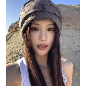 ins破洞堆堆帽女秋冬百搭保暖护耳月子帽韩版潮大头围包头帽冷帽