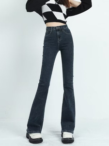 高腰微喇叭牛仔裤女2025春秋大码新款修身显瘦弹力小个子马蹄裤子
