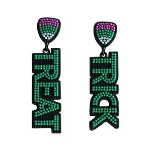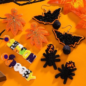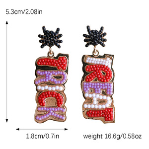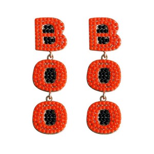 跨境万圣节英文字母耳环创意手工米珠个性卡通BOO镶米珠合金耳坠