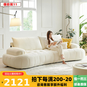 冬熊法式奶油风布艺沙发客厅小户型现代简约设计师钢琴键弧形沙发