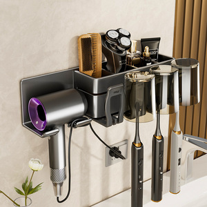免打孔吹风机支架墙式漱口刷牙收纳架子牙刷卫生间置物架收纳神器