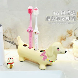 卡通腊肠狗牙刷架家用卫生间牙刷置物架手动牙刷收纳架子牙刷底座