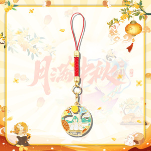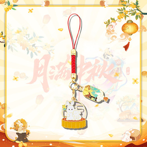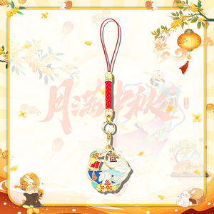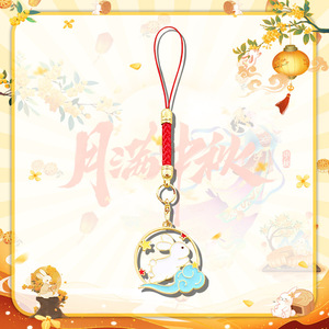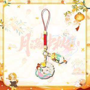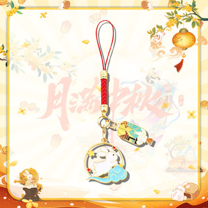 中秋卡通嫦娥月饼挂绳月兔铃铛红绳铃铛月亮团圆滴油合金包包挂件