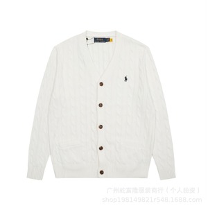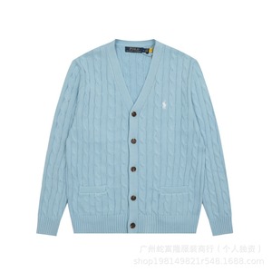 现货外贸RL拉夫V领小马刺绣麻花针织开衫经典基础百搭四季款男女