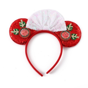 跨境新款圣诞节米奇亮片蝴蝶结发饰头箍装饰发卡节日派对表演发箍