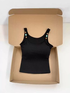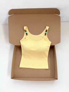 夏季新款甜啦串珠肩带设计吊带背心修身一体式带胸垫百搭上衣