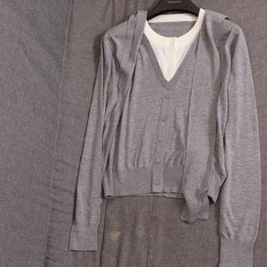 欧阳假两件撞色披肩针织衫女秋季新款慵懒风圆领飘带长袖上衣