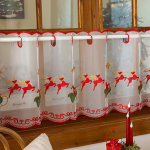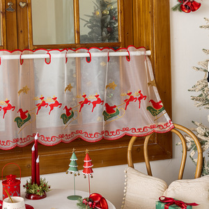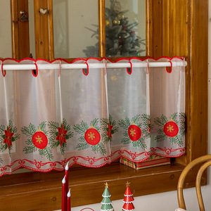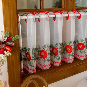 圣诞红色半帘美式门帘咖啡帘半遮光跨境刺绣蕾丝窗帘跨境厂家批发
