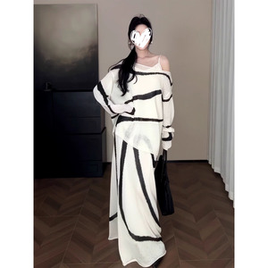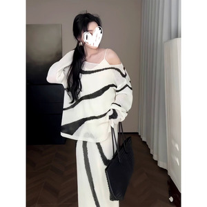 气质时尚感套装针织长袖防晒罩衫上衣女休闲半身裙2025新款两件套